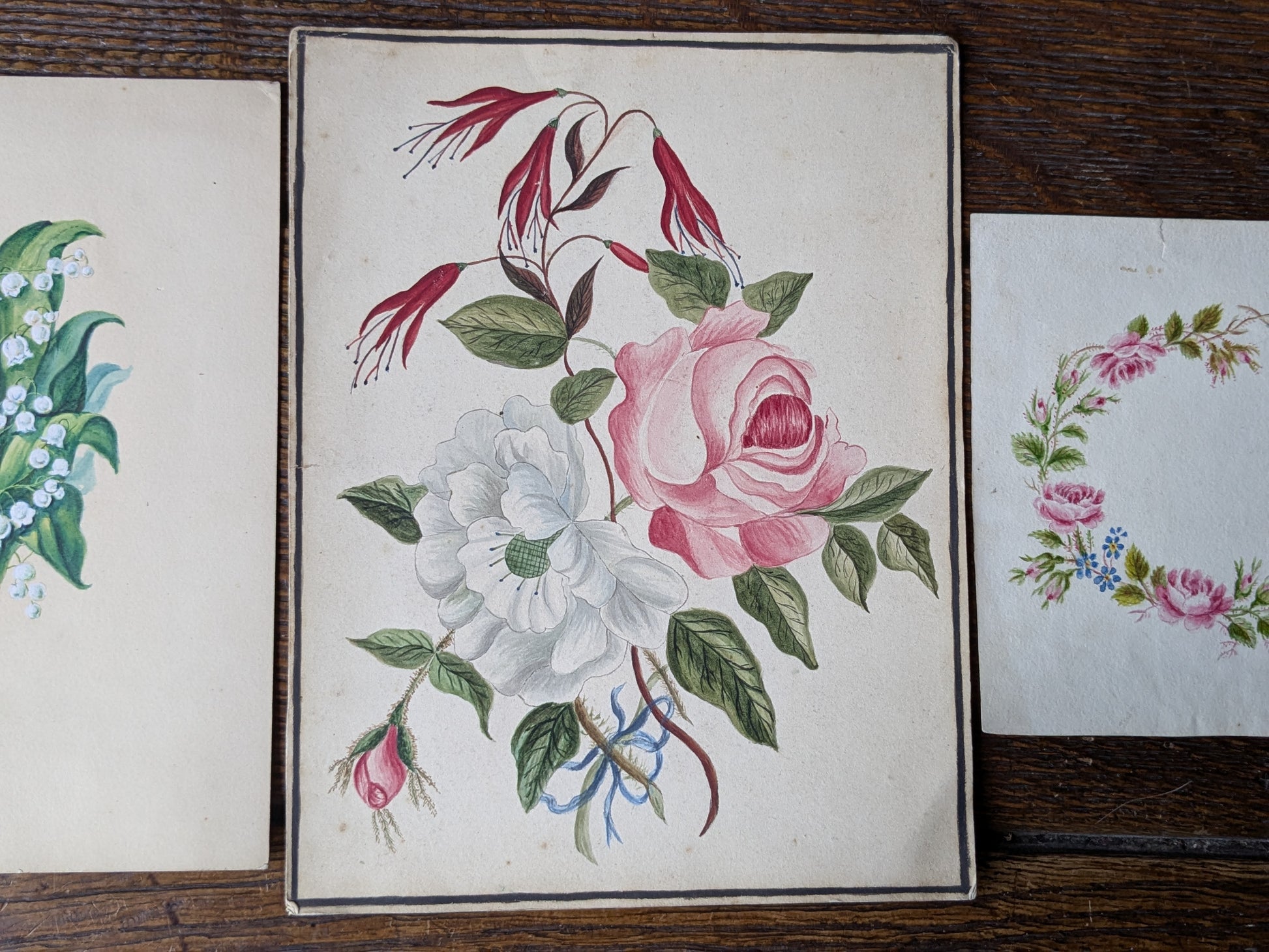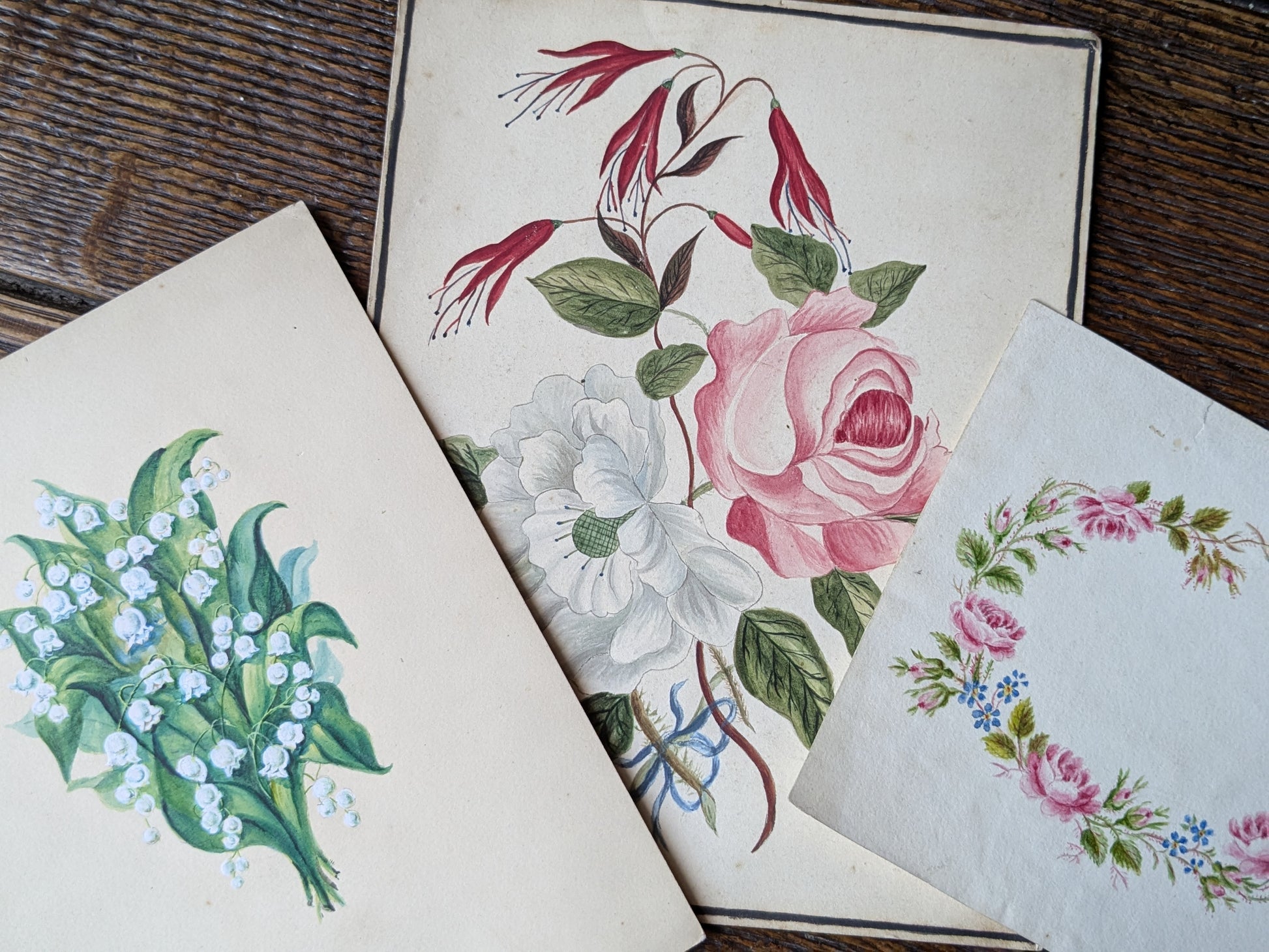 A lot of 3 antique watercolour flower paintings. They came tucked into a Victorian scrap album so I'm guessing they were intended to be added to the album but never glued in.