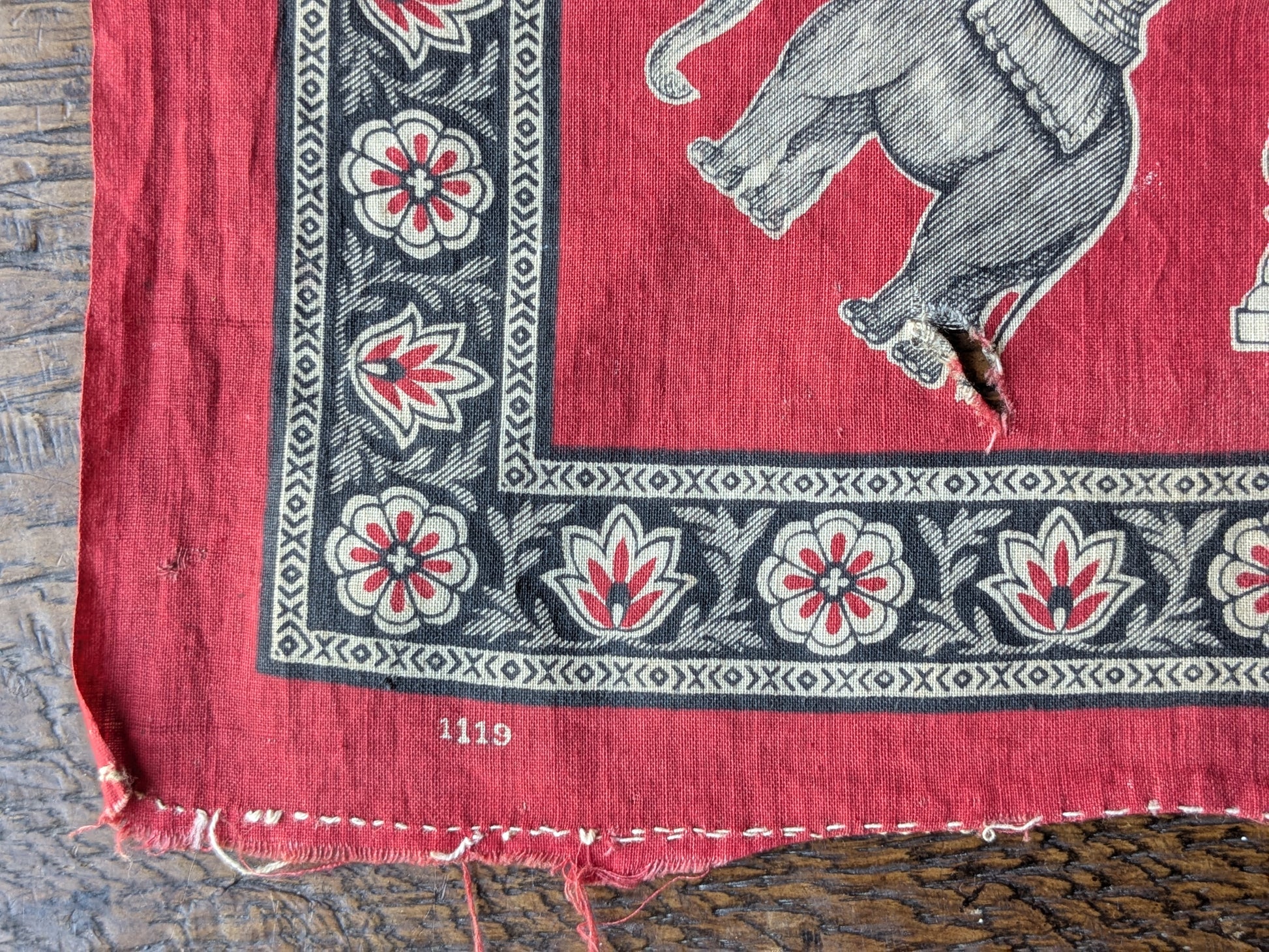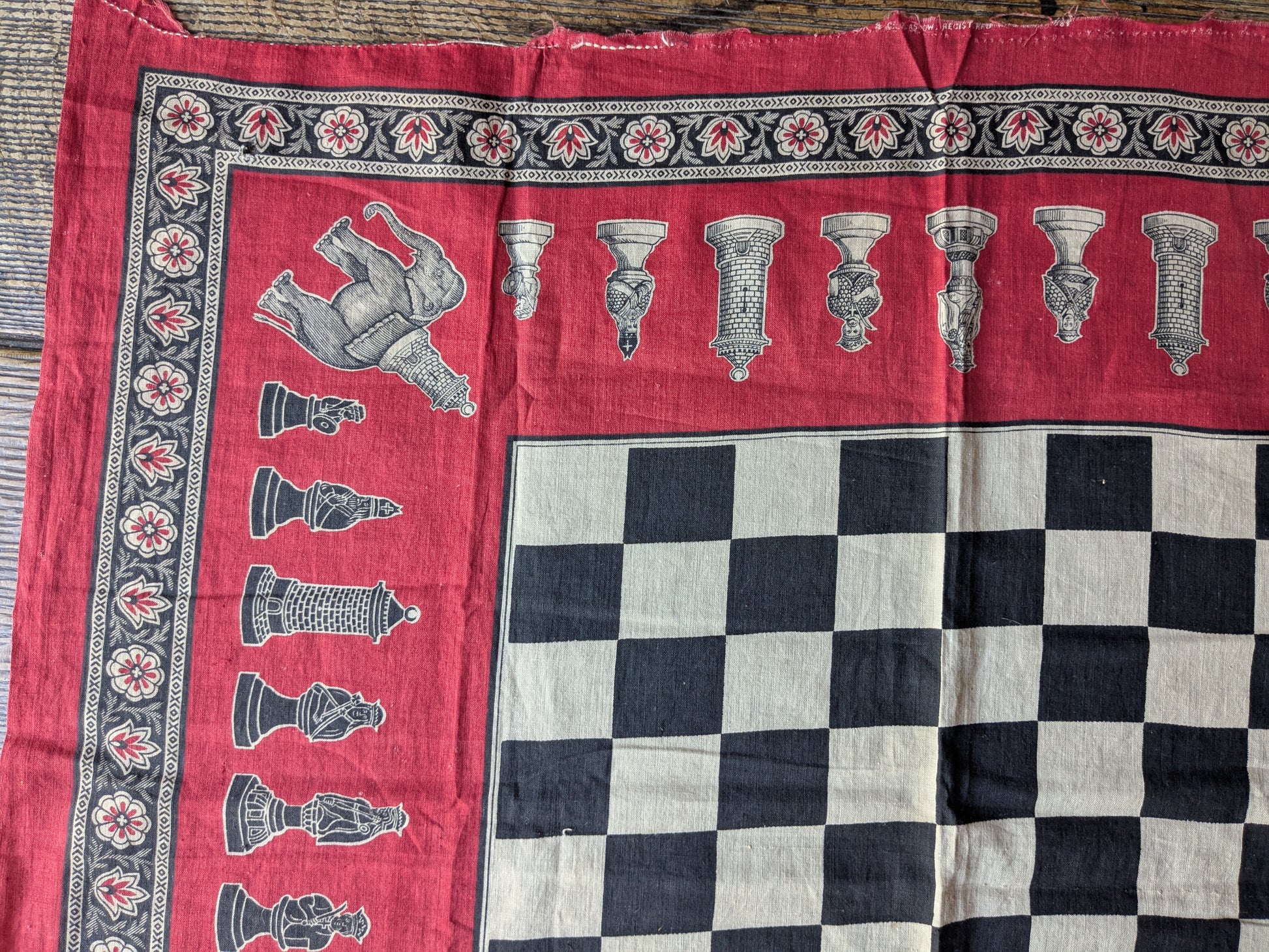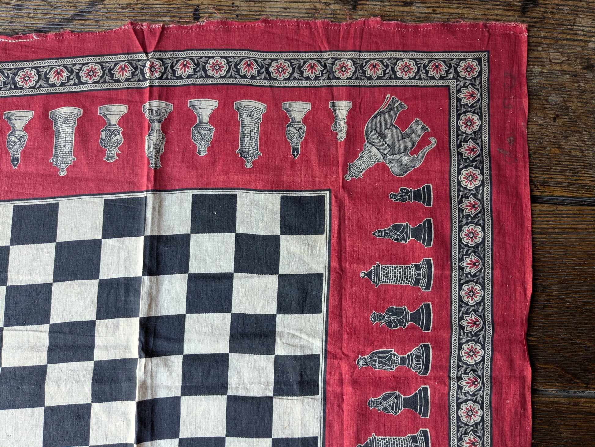 An original Victorian printed handkerchief with a chessboard design.