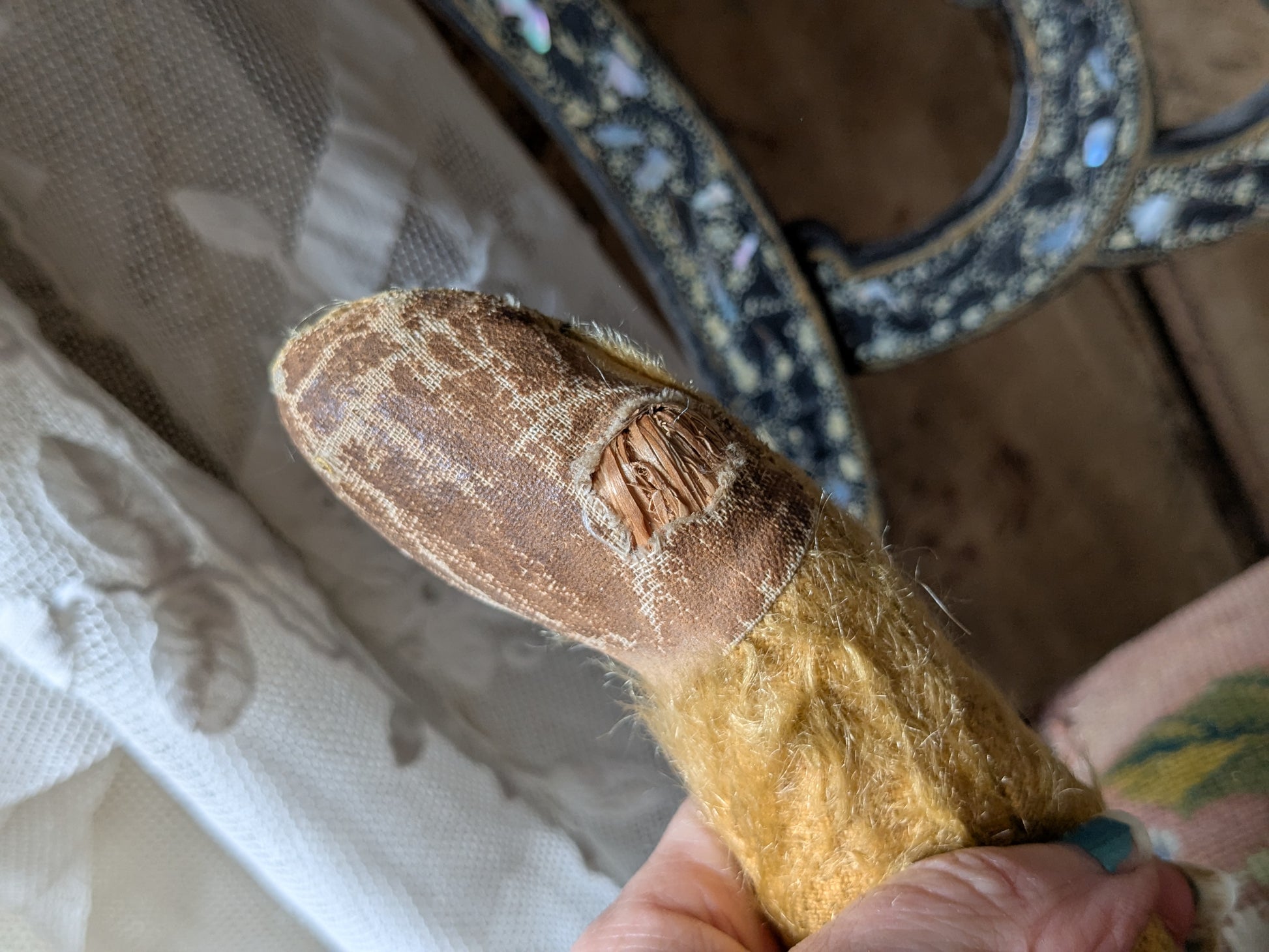 Please note fur loss & some little marks to his body. One paw pad has a hole in the rexine.