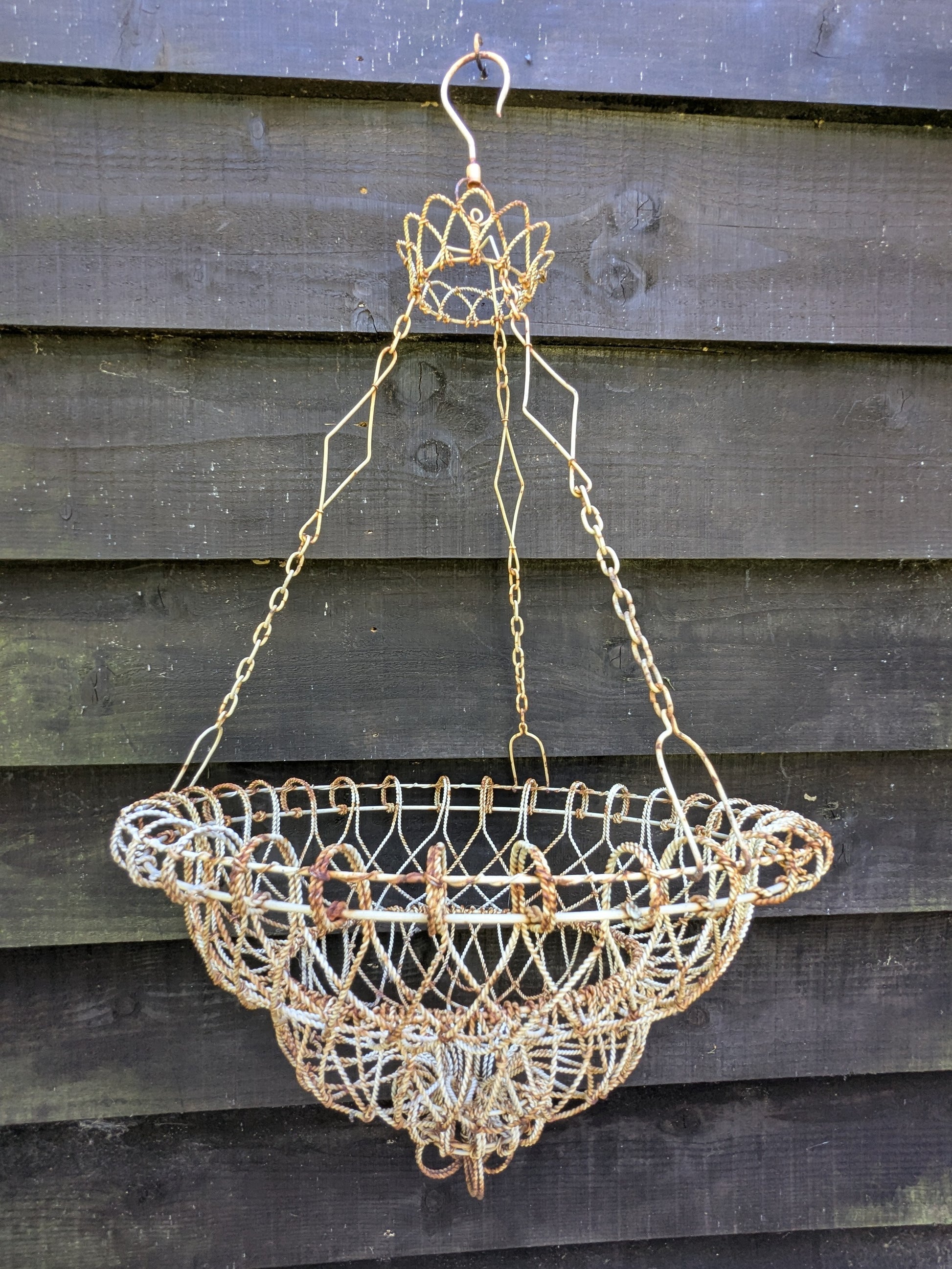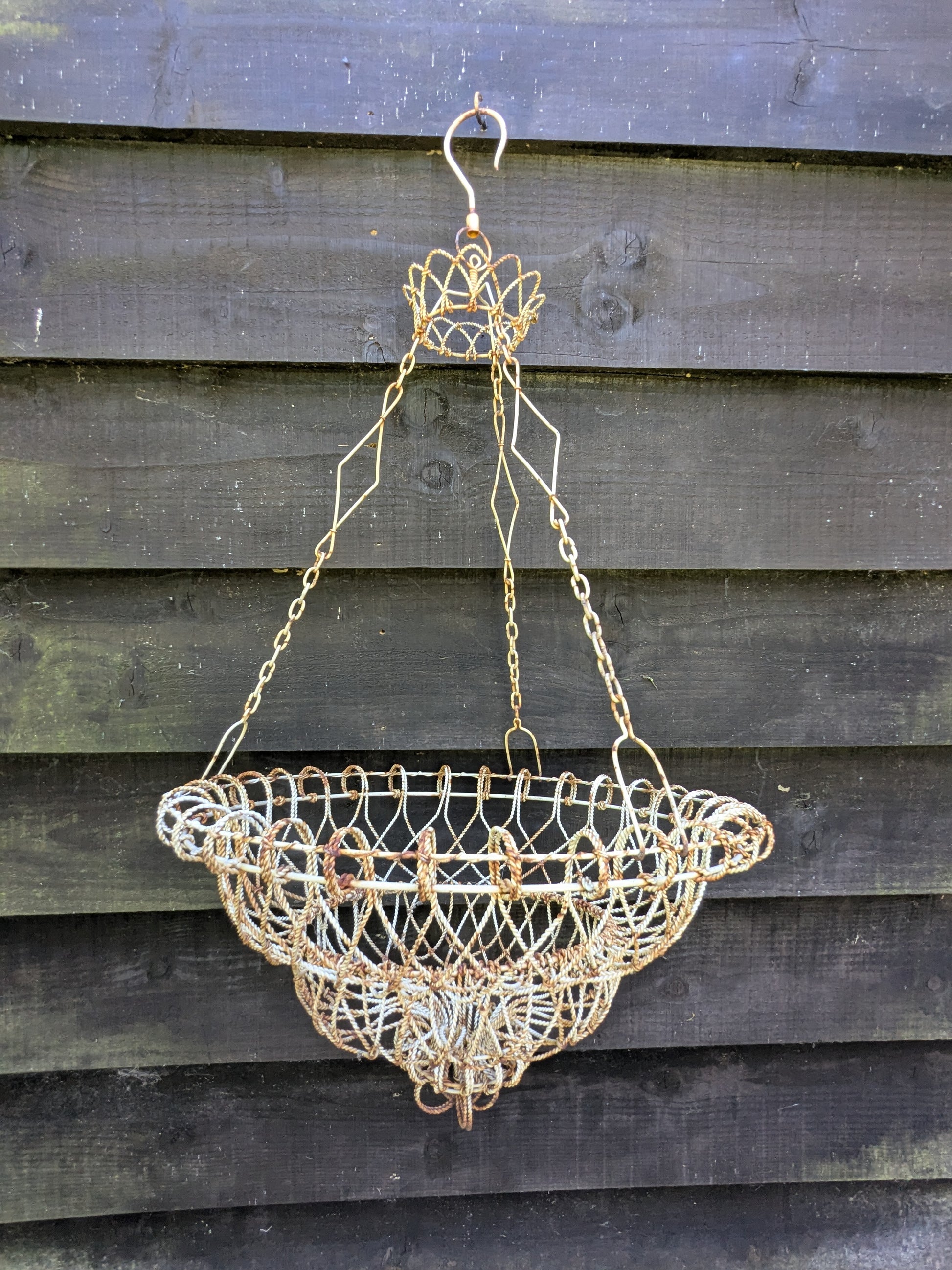A beautiful decorative wire hanging basket in the Victorian style. You can imagine this hanging in a Victorian conservatory. It is vintage rather than antique but is very decorative & in good condition.